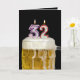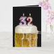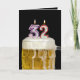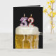 Number 32 lit birthday candles in mug of beer on black for 32nd birthday.