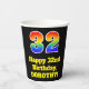 This fun and colourful birthday themed paper cup design features a large number “32” with a rainbow spectrum gradient inspired pattern, along with the message “Happy 32nd Birthday,”, and an editable name. It also has a black-coloured background. Vibrant, colourful paper cups like this might be fun to use at a birthday celebration being held to celebrate somebody’s thirty second birthday. [~Z0000537]