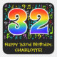 This fun, vibrant, and colourful birthday sticker design features a large number "32" having a rainbow spectrum gradient inspired pattern. It also features the message "Happy 32nd Birthday,", and a custom name. Part of the background features a pattern of various music notes and symbols having a variety of colours and sizes. Birthday-themed stickers like this might be fun to use as a birthday celebration decoration, or perhaps give as a birthday present, or perhaps be used when wrapping birthday gifts being given in celebration of a singer’s, a musician’s, a song composer’s, or somebody else’s thirty second birthday. [~Z0000423]