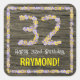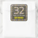 32nd Birthday: Floral Number, Faux Wood Look, Name Square Sticker