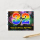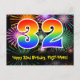 32nd Birthday – Fun Fireworks Pattern + Rainbow 32 Postcard