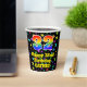 This joyful and fun birthday paper cup design features a large number “32” with a rainbow spectrum gradient inspired pattern, along with the message “Happy 32nd Birthday,”, and a customisable name. The background features a vibrant and colourful pattern having many star shapes with different sizes and colours. Vibrant, colourful paper cups like this might be fun to have at a birthday party/celebration being held in celebration of somebody’s thirty second birthday. [~Z0000540]
