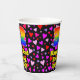 This cheerful and happy birthday-themed paper cup design features a large number “32” with a rainbow spectrum gradient inspired pattern, along with the message “Happy 32nd Birthday,”, and a custom name. The background features a pattern of purple, pink, and red heart shapes of various sizes. Happy, loving paper cups like this might be fun to use at a birthday celebration/party being held to celebrate somebody’s thirty second birthday. [~Z0000548]