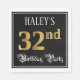 This ornate and elegant birthday themed paper napkin design features a customizable name and the message “32nd Birthday Party”. The large number “32nd” has a faux/imitation gold-inspired coloring pattern, the words “Birthday Party” are in fancy script-style text, and the background is colored black by default (although it can be customized). Fancy, opulent paper napkins like this might be used at a birthday celebration being held to honor somebody’s thirty second birthday. [~Z0000565]