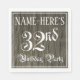 This elegant and fancy birthday themed paper napkin design features a custom name and the message “32nd Birthday Party”. The large number “32nd” and the words “Birthday Party” are in luxurious script-style text. The background features an imitation/faux woodgrain-inspired pattern. Luxurious, elaborate paper napkins like this might be used at a birthday party/celebration being held in celebration of somebody’s thirty second birthday. [~Z0000564]