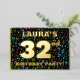 The front of this fun and exciting thirty-second birthday celebration/party foil invitation card design features a personalised name, a large number “32nd”, the message “BIRTHDAY PARTY!”, and a border. The background of the front features an eye-catching, colourful musical notes and symbols pattern. The back features personalised details about the event, such as the date, time, venue/place, and any other information that may be relevant. Personalised invitations like these might be a fun way to invite guests to a birthday gathering/party being held to honour somebody’s 32nd birthday. These might be more meaningful if that person is a songwriter, a composer, a singer, a musician, or a lover of music. [~Z0000601]