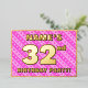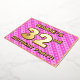 The front of this upbeat thirty-second birthday celebration/party foil invitation card design features an editable name, a large number “32nd”, the message “BIRTHDAY PARTY!”, and a border. The background of the front has a fun pattern with light pink and dark pink stripes and heart shapes. The back features personalised details about the event, such as the date, time, venue, and any other information that may be useful. Customisable invitations like these might be a fun way to invite attendees to a birthday gathering being held to honour somebody’s 32nd birthday. [~Z0000603]