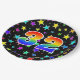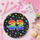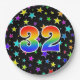 This fun, colourful, and cheerful paper plate design features a large number "32" coloured with a rainbow spectrum gradient inspired pattern. The background features a colourful pattern of star shapes. Fun paper plates like this might be used at a celebration being held to honour somebody’s thirty second birthday, or a couple’s thirty-second wedding anniversary, or some other 32nd event. [~Z0000493]