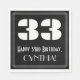 This 1920s-1930s look inspired vintage style birthday themed paper napkin design features a large art deco look inspired number "33", the message "Happy 33rd Birthday,", a custom name, and a border pattern consisting of thin lines. Birthday themed paper napkins like this might be fun to use at a party being held to celebrate somebody’s thirty third birthday. [~Z0000494]