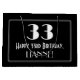 This Roaring Twenties style inspired vintage look birthday-themed gift bag design features a large art deco style inspired number "33", the message "Happy 33rd Birthday,", an editable name, and a border pattern consisting of thin lines. The background is coloured black. A gift bag like this might be used when giving a gift or present in honour of somebody’s thirty third birthday. [~Z0000496]