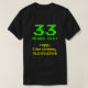 This silly and geeky shirt design features the message "33 YEARS OLD!", the birthday greeting message "Happy 33rd Birthday,", and a customisable name. The upper age digits and text have a nerdy, green, pixelated, 8-bit graphics style appearance inspired by that of 8-bit computer games and 80s era video games. The lower greeting message features a geeky, yellow, retro digital computing inspired appearance. Shirts like this might be worn by the guests at a birthday party being held to celebrate the thirty-third birthday of somebody who likes vintage video games or vintage computers. [~Z0000455]