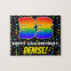 This eye-catching and exciting birthday jigsaw puzzle design features a large number “33” having a multicolored rainbow spectrum inspired gradient pattern. It also features the message “HAPPY 33rd BIRTHDAY,”, and a customisable recipient name. The background has a fun, colourful star shapes pattern. A cheerful, personalised birthday puzzle like this might be a fun way to send a birthday greeting message to somebody who is celebrating their thirty-third birthday. [~Z0000607]