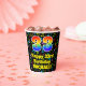 This colourful and cheerful music-themed birthday paper cup design features a large number “33” having a rainbow spectrum gradient inspired pattern. It also features the message “Happy 33rd Birthday,”, and a personalised name. The background features an exciting and colourful pattern having music notes and symbols of various sizes and colours. Vibrant, colourful paper cups like this might be fun to have at a birthday party/celebration being held to celebrate somebody’s 33rd birthday. [~Z0000541]