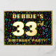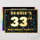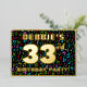 The front of this exciting thirty-third birthday celebration foil invitation card design features a customisable name, a large number “33rd”, the message “BIRTHDAY PARTY!”, and a border. The background of the front features an eye-catching, colourful pattern of music symbols and notes. The back features personalised details about the event, such as the date, time, venue, and any other important information. Editable invitations like these might be a fun way to invite guests/attendees to a birthday gathering being held in celebration of somebody’s 33rd birthday. These might be more meaningful if that person is a composer, a musician, a singer, a songwriter, or likes listening to music. [~Z0000601]