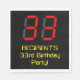 This geeky and fun birthday themed paper napkin design features a large number "33" having a red seven segment digital display inspired appearance, along with a customisable name and the message "33rd Birthday Party!" in geeky retro style yellow text, on a black coloured background. Fun, editable paper napkins like this might be used at a party being held to celebrate somebody’s thirty third birthday. [~Z0000388]