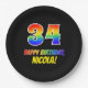 34th Birthday: Bold, Fun, Simple, Rainbow 34 Paper Plate