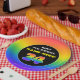This cheerful and upbeat birthday themed paper plate design features the number “34“ having a vibrant rainbow spectrum inspired gradient pattern, along with the message “HAPPY 34th BIRTHDAY,”, and a custom recipient name. Birthday themed paper plates like this might be a fun way to celebrate somebody’s 34th birthday. [~Z0000635]