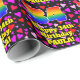 This colourful and happy birthday themed wrapping paper design features a large number “34” with a rainbow spectrum gradient inspired pattern, along with the message “Happy 34th Birthday,”, and a customisable name. The background features a pattern of heart shapes with colours like pink, red, and purple. Birthday themed wrapping paper like this might be a fun way to wrap a gift or present being given to somebody who is celebrating their thirty fourth birthday. [~Z0000549]
