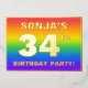 The front of this fun and vibrant thirty-fourth birthday party/celebration foil invitation card design features a personalized name, a large number “34th”, the message “BIRTHDAY PARTY!”, and a border. The background of the front has an exciting, colorful, rainbow spectrum inspired gradient pattern. The back features personalized details about the event, such as the date, time, venue/location, and any other useful information. Customized invitations like these might be a fun way to invite guests to a birthday party/gathering being held to honor somebody’s 34th birthday. [~Z0000599]