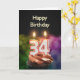 A birthday cup-cake with candles. The candles are made up of the number 34, for a 34th birthday. A birthday card suitable for everybody.