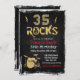 35 Rocks Rockstar Electric Guitar Metal Metallic Silver Glitter Surprise 35th Birthday Invitation