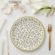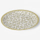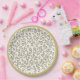 This cool design is a gold and white random number pattern with the milestone number 35 repeated in varied sizes and angles. The design is trimmed with a gold ring around the rim.