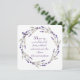 Lavender wreath with purple butterfly on white background for 35th anniversary party invite.