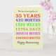 35th wedding anniversary card counting down the years, days, months, hours, and minutes that you have been married. Funny, but with a romantic verse inside. A card to give pause for thought! Leap years have been taken into account!