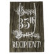 This lavish and formal birthday gift bag design features the message “Happy 35th Birthday,” in elaborate script style text, on a faux wood look pattern background. It also features an editable recipient name. A birthday themed gift bag like this might be used when giving a gift or present in celebration of somebody’s 35th birthday. [~Z0000558]