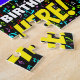 This fun and upbeat birthday jigsaw puzzle design features a large number “35” having a multicolored rainbow spectrum inspired gradient pattern. It also features the message “HAPPY 35th BIRTHDAY,”, and a custom recipient name. The background features a vibrant pattern of musical notation symbols having a variety of sizes and colours. A bold, personalised birthday puzzle like this might be used to acknowledge somebody’s thirty-fifth birthday. These might be more meaningful if that person is a composer, a musician, a singer, a songwriter, or a lover of music. [~Z0000608]