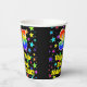 This cheerful and fun birthday-themed paper cup design features a large number “35” having a rainbow spectrum gradient inspired pattern. It also features the message “Happy 35th Birthday,”, and a custom name. The background features a vibrant and colourful star field inspired pattern. Colourful, vibrant paper cups like this might be fun to use at a birthday party being held to honour somebody’s 35th birthday. [~Z0000540]