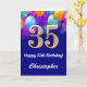 35th Birthday Navy Blue and Gold Colourful Balloons Birthday Card. For further customisation, please click the "Customise it" button and use our design tool to modify this template.