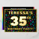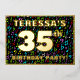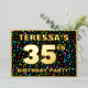 The front of this upbeat and exciting thirty-fifth birthday celebration foil invitation card design features an editable name, a large number “35th”, the message “BIRTHDAY PARTY!”, and a border. The background of the front has an eye-catching, colourful pattern of music notes and symbols. The back features personalised details about the event, such as the date, time, venue/place, and any other information that may be relevant. Customisable invitations like these might be a fun way to invite guests to a birthday gathering/party being held to celebrate somebody’s 35th birthday. These might be more meaningful if that person is a musician, a singer, a songwriter, a composer, or a lover of music. [~Z0000601]