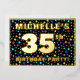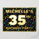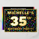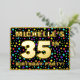 The front of this fun and vibrant thirty-fifth birthday celebration/party foil invitation card design features a customisable name, a large number “35th”, the message “BIRTHDAY PARTY!”, and a border. The background of the front has an upbeat, multicolored starfield pattern. The back features personalised details about the event, such as the date, time, venue, and any other important information. Personalised invitations like these might be a fun way to invite guests/attendees to a birthday gathering/party being held to celebrate somebody’s 35th birthday. [~Z0000600]