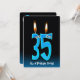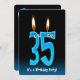 Aqua and blue gradient background with eyeballs on candles for 35th Birthday party invitation.