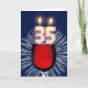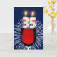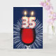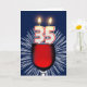 A birthday glass of wine with candles. The candles are made up of the number 35, for a 35th birthday. Fireworks are exploding in the background. A birthday card suitable for anybody, male or female.