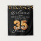 35th Class Reunion Welcome Black Orange Balloon Numbers Sign. Welcome high school or university college alumni to your 35 Year Class Reunion with this personalised modern, festive welcome sign in black and orange featuring large faux metallic orange balloon numbers, orange streamers and confetti and white lights on black with your school name and class year. ASSISTANCE: For help with design modification or personalisation, other balloon number for another year, colour change, transferring the design to another product or if you would like coordinating items, contact the designer BEFORE ORDERING via the Zazzle Chat MESSAGE tab below or email makeitaboutyoustore@gmail.com.