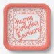 This numeric design has a coral and white random number pattern with a coral milestone number 35 repeated in varied sizes and angles. There is a white area in the centre for your text and coral-and-white squares around the rim.