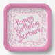 This numeric design has a pink and white random number pattern with a pink milestone number 35 repeated in varied sizes and angles. There is a white area in the centre for your text and pink-and-white squares around the rim.