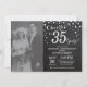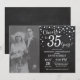 35th Wedding Anniversary with custom photo. Chalkboard Black and Silver Invitation. Thirty five Wedding Anniversary. Chalkboard Black and Silver Glitter Diamond Background. Silver Confetti. Adult Birthday. Woman or Man Male Birthday Party. For further customisation, please click the "Customise it" button and use our design tool to modify this template.