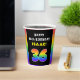 This fun and bold birthday-themed paper cup design features a large number “36“ with a vibrant rainbow spectrum inspired gradient pattern, along with the message “HAPPY 36th BIRTHDAY,”, and an editable recipient name. Upbeat paper cups like this might be fun to use at a party in honour of somebody’s 36th birthday. [~Z0000639]