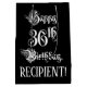 This elegant and elaborate birthday gift bag design features the message “Happy 36th Birthday,” in lavish script style text, on a black coloured background. It also has an editable recipient name. A gift bag like this might be used when giving a gift or present in honour of somebody’s thirty sixth birthday. [~Z0000557]