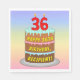 This colourful and cheerful birthday themed paper napkin design features a cartoon-style depiction of a three-tier birthday cake having number-shaped candles on top showing the age “36“, along with the message “HAPPY 36TH BIRTHDAY,”, and a personalised recipient name. The background has a multi-colour pastel rainbow spectrum inspired gradient pattern. Fun paper napkins like these might be used when hosting a birthday party for somebody in celebration of their thirty sixth birthday. [~Z0000623]