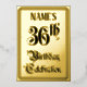 The front of this fancy thirty-sixth birthday party foil invitation/announcement card design features the message “36th Birthday Celebration” in elaborate script-style text. It also features a customisable name. The back features personalised details about the event, such as the date, time, location/venue, and any other useful information. Elaborate, opulent, personalised invitations like these might be used to invite guests to a birthday celebration/party being held in celebration of somebody’s thirty-sixth birthday. [~Z0000596]