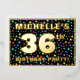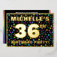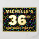 The front of this exciting and upbeat thirty-sixth birthday celebration/party foil invitation card design features a personalised name, a large number “36th”, the message “BIRTHDAY PARTY!”, and a border. The background of the front features a vibrant, multicolored starfield pattern. The back features personalised details about the event, such as the date, time, venue, and any other relevant information. Personalised invitations like these might be a fun way to invite guests to a birthday party/gathering being held to celebrate somebody’s 36th birthday. [~Z0000600]