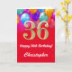 36th Birthday Red and Gold Colourful Balloons Birthday Card. For further customisation, please click the "Customise it" button and use our design tool to modify this template.