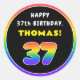 37th Birthday: Colourful Rainbow # 37, Custom Name Classic Round Sticker