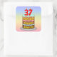 37th Birthday: Fun Cake and Candles + Custom Name Square Sticker