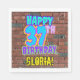 This fun birthday paper napkin design features the message “HAPPY 37TH BIRTHDAY,” having a vibrant, colourful, graffiti and urban street art inspired look, in addition to a customisable recipient name. The background features a pattern inspired by the look of a brick wall. Fun, personalised birthday themed paper napkins like this might be used at a party in celebration of somebody’s thirty seventh birthday. [~Z0000534]