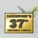 The front of this bold thirty-seventh birthday celebration/party foil invitation card features a custom name, a large number “37th”, the message “BIRTHDAY PARTY!”, and a border, all featuring a rustic, yet sophisticated, faux wood grain look inspired pattern. The back features personalised details about the event, such as the date, time, place/venue, and any other useful information. Customised invitations like these might be used to invite guests/attendees to a birthday gathering being held to celebrate somebody’s 37th birthday. [~Z0000595]